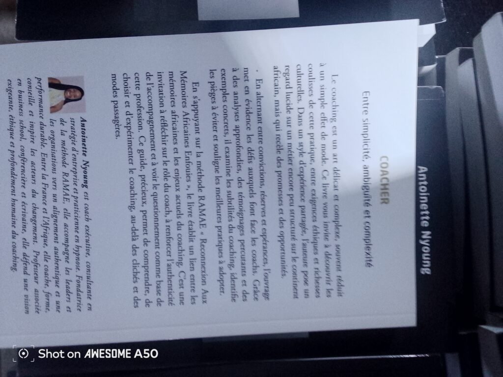 Le mercredi 17 septembre 2025, la coach Antoinette Nyoung dédicace dédicacé son ouvrage intitulé ‹‹ Coacher : entre simplicité, ambiguïté et complexité ›› au siège de la maison Imbokodo au quartier Omnisports dans le 5e arrondissement de la ville de Yaoundé. Une cérémonie très courrue qui a connu la participation de sa famille, ses amis et public amoureux de la littérature, question de venir s’abreuver les fruits de ce nouvel ouvrage.